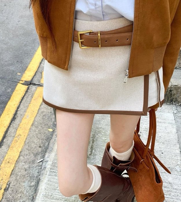 優寶購物《ubao.Tw》特貨品商城,黑貓宅配,取貨付款,PapaDarling 25SS 韓版復古氣質假兩件短款a字顯瘦撞色裙褲 | Yahoo拍賣