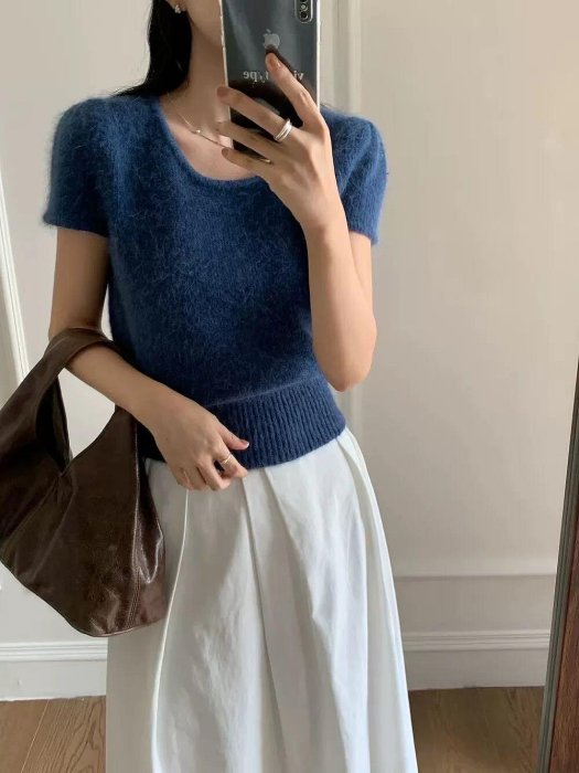 優寶購物《ubao.Tw》特貨品商城,黑貓宅配,取貨付款,百搭實穿不刺膚兔毛短袖針織衫🍁 | Yahoo拍賣