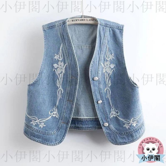 優寶購物《ubao.Tw》特貨品商城,黑貓宅配,取貨付款,小伊閣=刺繡花朵坎肩無袖時尚牛仔馬甲外套2025新款夏季休閑背心上衣外穿 | Yahoo拍賣