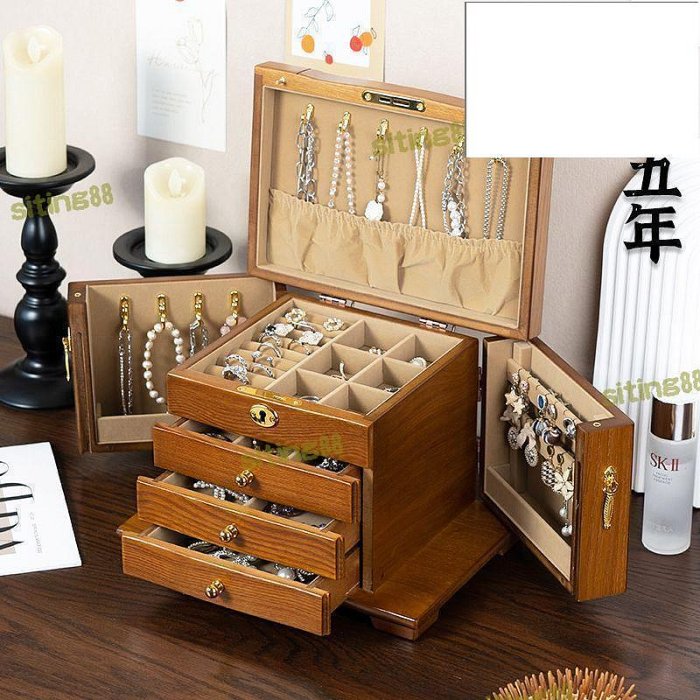 優寶購物《ubao.Tw》特貨品商城,黑貓宅配,取貨付款,【公司貨免運】飾品項鍊收納盒多層桌面首飾盒純實木大容量新款復古結婚送禮 | Yahoo拍賣