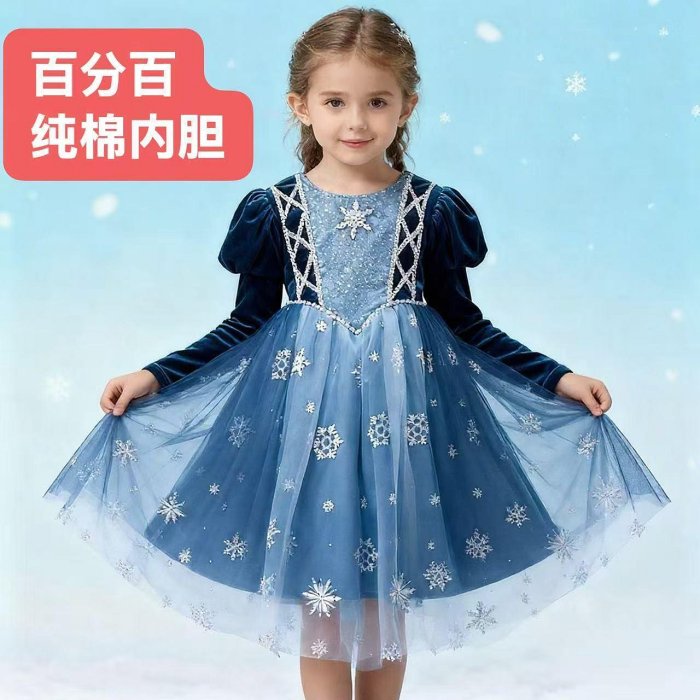 優寶購物《ubao.Tw》特貨品商城,黑貓宅配,取貨付款,女童春秋愛莎公主裙新款小女孩秋季兒童長袖冬款洋氣生日禮服裙子 | Yahoo拍賣