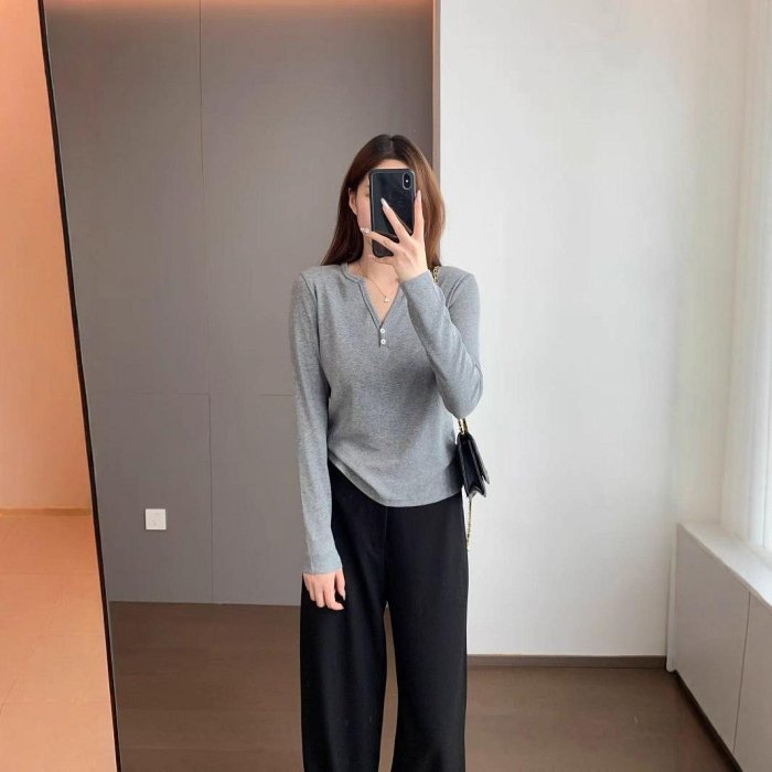 優寶購物《ubao.Tw》特貨品商城,黑貓宅配,取貨付款,精緻時髦蘭精天絲精棉柔軟親膚修身版半開V領紐扣打底衫╭☆ Queen☆like* 嚴選女裝 #51359 | Yahoo拍賣