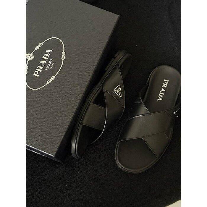 優寶購物《ubao.Tw》特貨品商城,黑貓宅配,取貨付款,US10 號UK9 實拍】Prada三角鐵牌黑色皮革拖鞋|精品代購JIAN | Yahoo拍賣