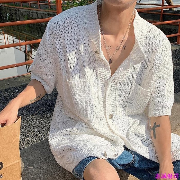 優寶購物《ubao.Tw》特貨品商城,黑貓宅配,取貨付款,鏤空冰爽絲針織衫男 M-3XL 兩色入 白色雅痞襯衫男 鏤空針織襯衫男 小香風針織短袖t恤男 痞帥短袖襯衫 港風休閒針織-惠誠優選 | Yahoo拍賣