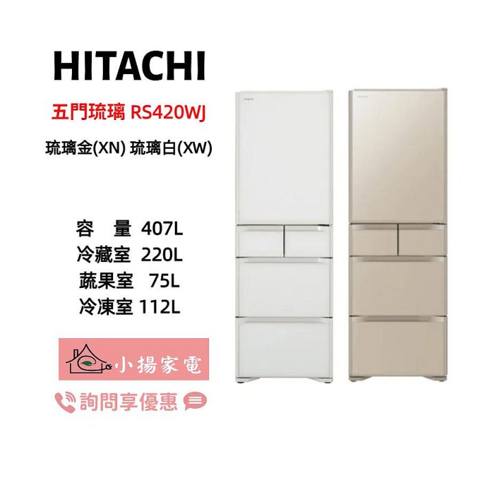 優寶購物《ubao.Tw》特貨品商城,黑貓宅配,取貨付款,【小揚家電】日立冰箱 五門琉璃 RS420WJ (右開) 琉璃金(XN) / 琉璃白(XW) 407L (詢問享優惠) | Yahoo拍賣