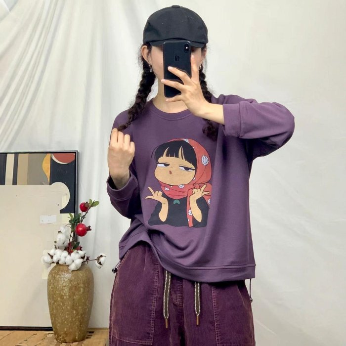 優寶購物《ubao.Tw》特貨品商城,黑貓宅配,取貨付款,新款上架秋季韓版寬松減齡小女孩印花圓領套頭衛衣下擺抽繩百搭上衣女2512明星大牌同款服裝 | Yahoo拍賣