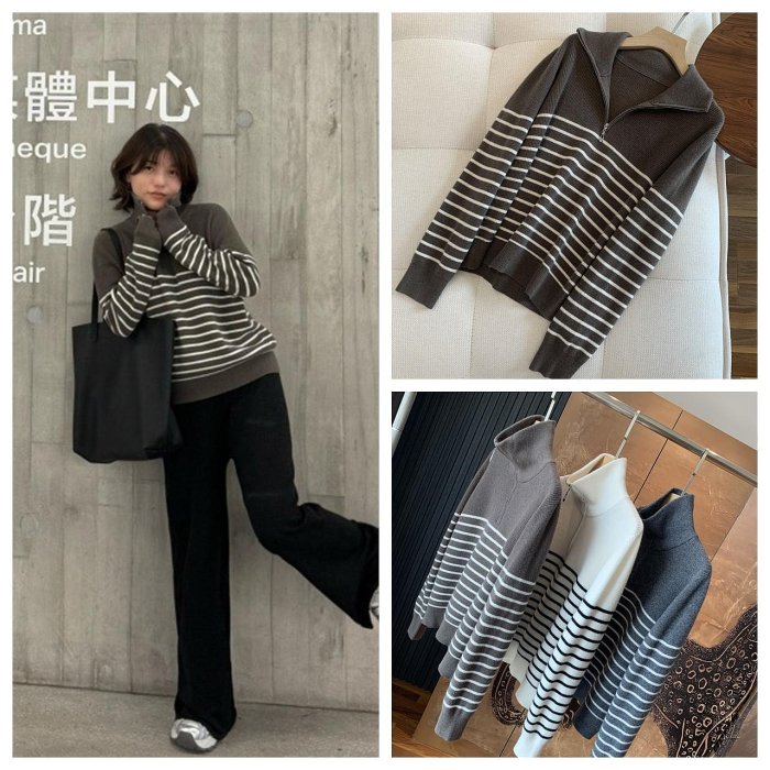 優寶購物《ubao.Tw》特貨品商城,黑貓宅配,取貨付款,秋冬新款 經典歐美風~條紋翻領半拉鍊羊毛羊絨加厚 針織毛衣 [Classique*真經典] 092205 | Yahoo拍賣