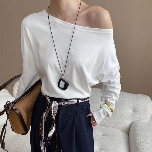 優寶購物《ubao.Tw》特貨品商城,黑貓宅配,取貨付款,上衣【送項鍊~設計感斜露領慵懶風休閒氣質T】☆sandy☆魔法櫥窗KSN7975 | Yahoo拍賣
