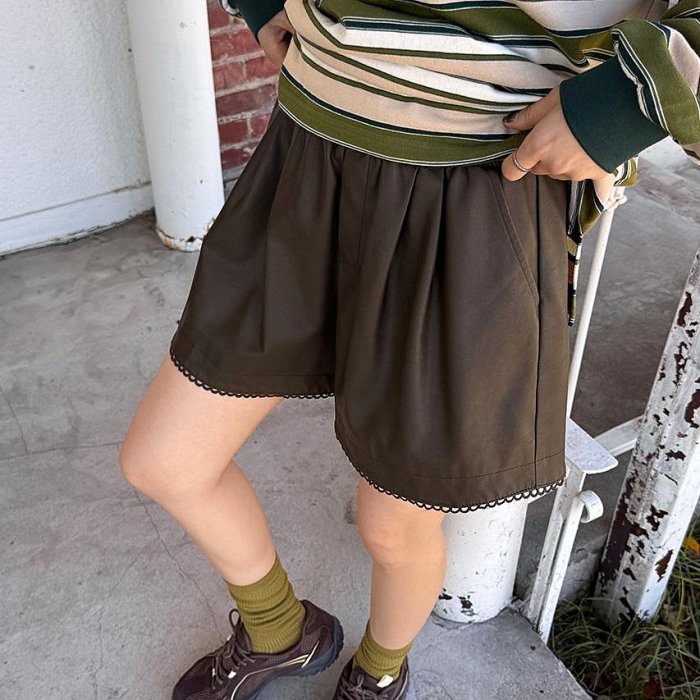 優寶購物《ubao.Tw》特貨品商城,黑貓宅配,取貨付款,Forever Kids 正韓 喜歡!蕾絲邊裝飾 皮短褲【B60349】 | Yahoo拍賣