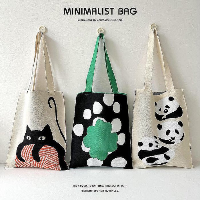 優寶購物《ubao.Tw》特貨品商城,黑貓宅配,取貨付款,現貨 針織包 針織手提包2023新款流行印花熊貓便當包上班雜物包百搭手拎包包女~特價 | Yahoo拍賣