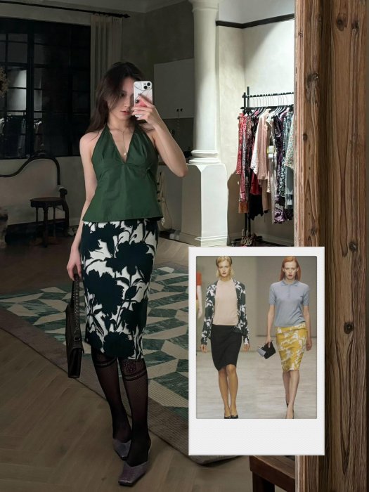 優寶購物《ubao.Tw》特貨品商城,黑貓宅配,取貨付款,嚴選普拉達SS2001墨綠植物剪影提花半裙 高腰設計 小直筒版型 米色系 倍受收藏家愛心推薦 SS2001 普拉達 半裙 記憶棉 | Yahoo拍賣