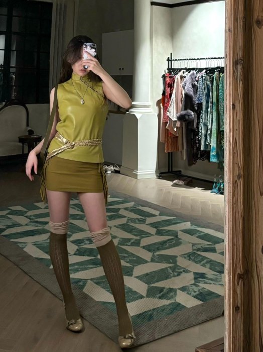 優寶購物《ubao.Tw》特貨品商城,黑貓宅配,取貨付款,嚴選Vivienne Tam譚燕玉芥末黃小羊皮改良旗袍無袖上衣 修身設計 稱身美型 旗袍風 上市新品 小羊皮旗袍 上衣 6757 黃色 小羊皮 | Yahoo拍賣