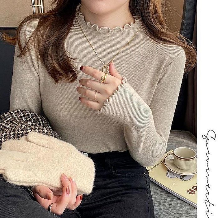 優寶購物《ubao.Tw》特貨品商城,黑貓宅配,取貨付款,柔軟打底衫女 2022韓版新款木耳邊中高領毛衣 針織上衣 秋冬洋氣內搭 | Yahoo拍賣