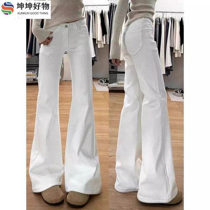 優寶購物《ubao.Tw》特貨品商城,黑貓宅配,取貨付款,白色微喇牛仔褲女2025春季新款小個子闊腿寬松顯瘦不貼腿喇叭褲子~坤坤好物~ | Yahoo拍賣
