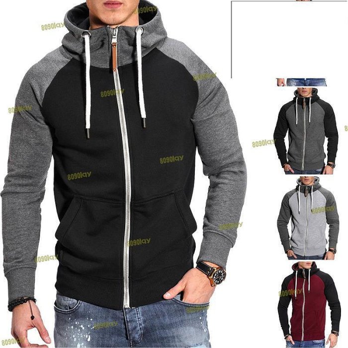 優寶購物《ubao.Tw》特貨品商城,黑貓宅配,取貨付款,【好康免運】歐碼男士拼色健身運動男士衛衣休閒時尚撞色插肩袖開衫上衣 | Yahoo拍賣