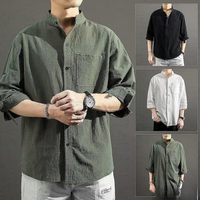 優寶購物《ubao.Tw》特貨品商城,黑貓宅配,取貨付款,素色襯衫男士 七分袖襯衣男 薄外衣男生【M-3XL】男女士亞麻寬松短袖襯衣立領商務潮流痞帥夏季寬鬆寸衫後生仔服飾 | Yahoo拍賣