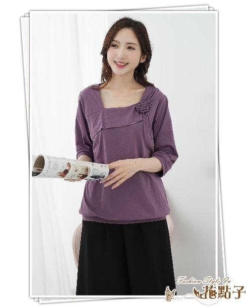 優寶購物《ubao.Tw》特貨品商城,黑貓宅配,取貨付款,╭*加大尺碼*╮93631. 斜領荷葉花朵中袖上衣☆°40.44.48.52 | Yahoo拍賣