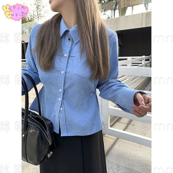 優寶購物《ubao.Tw》特貨品商城,黑貓宅配,取貨付款,韓國MM=微胖mm大碼藍色收腰襯衫設計上衣燈芯絨長袖新款襯衣 | Yahoo拍賣
