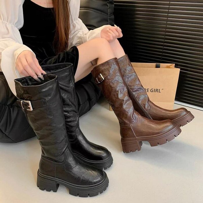 優寶購物《ubao.Tw》特貨品商城,黑貓宅配,取貨付款,(優選)秋季新款騎士靴女長筒馬丁靴美拉德不過膝冬季長靴高筒機車靴 | Yahoo拍賣