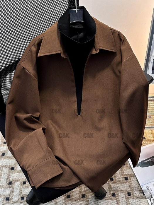 優寶購物《ubao.Tw》特貨品商城,黑貓宅配,取貨付款,潮衣庫『假兩件V領襯衫男款高級垂感春秋季撞色拼接寬松長袖襯衣外套』休閒T恤襯衫POLO衫背心男上衣 | Yahoo拍賣