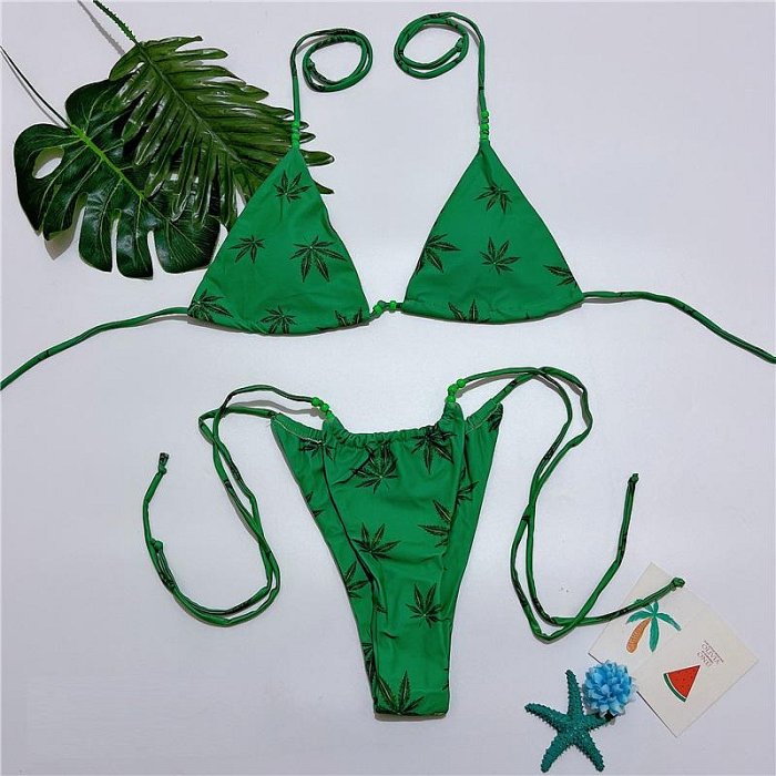 優寶購物《ubao.Tw》特貨品商城,黑貓宅配,取貨付款,【活動】新款樹葉印花性感比基尼女士沙灘綁帶分體泳衣帶胸墊掛脖泳裝【活動】 | Yahoo拍賣