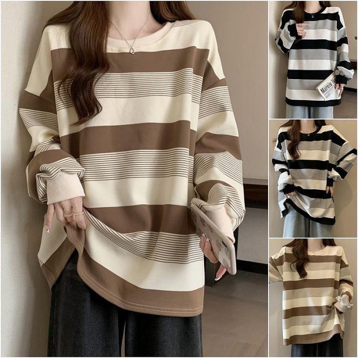 優寶購物《ubao.Tw》特貨品商城,黑貓宅配,取貨付款,✿ 吉米花 ✿ M-016914 大碼條紋長袖T恤 ( 2色 M-2XL ) 全碼 | Yahoo拍賣