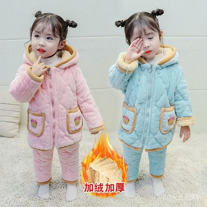 優寶購物《ubao.Tw》特貨品商城,黑貓宅配,取貨付款,兒童睡衣冬季加厚女童家居服套裝小童女寶寶三層夾棉睡衣加絨保暖-優米童裝 | Yahoo拍賣