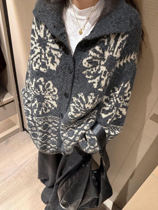 優寶購物《ubao.Tw》特貨品商城,黑貓宅配,取貨付款,. NL Select Shop .翻領設計感印花加厚羊毛針織大開衫毛衣外套 | Yahoo拍賣