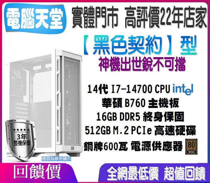 優寶購物《ubao.Tw》特貨品商城,黑貓宅配,取貨付款,黑色契約型 I7 14700/512GM.2/16G/銅牌600瓦/B760 電腦天堂 POE 電競 文書機 桌機 PC | Yahoo拍賣