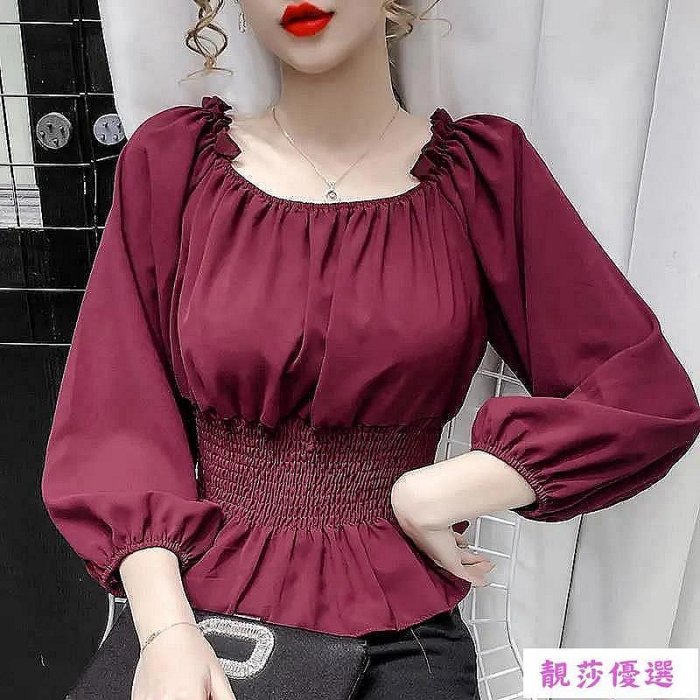 優寶購物《ubao.Tw》特貨品商城,黑貓宅配,取貨付款,一字領雪紡衫 春秋新款 韓版 合身 長袖上衣 收腰 荷葉邊 長袖襯衫 短版 百搭 露肩上衣 女生衣著 199-靚莎優選 | Yahoo拍賣