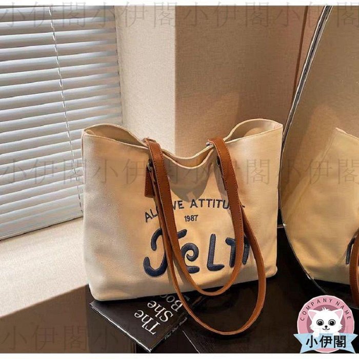 優寶購物《ubao.Tw》特貨品商城,黑貓宅配,取貨付款,小伊閣=2025新款帆布包時尚字母托特大學生大容量上課包百搭單肩通勤加厚 | Yahoo拍賣
