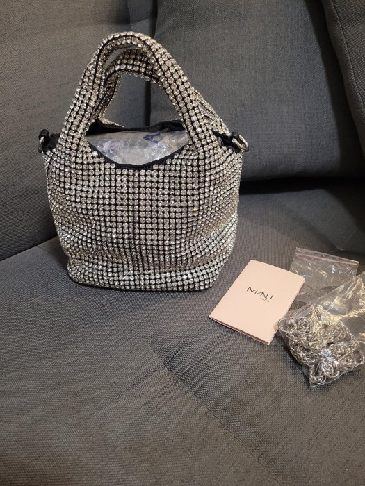 優寶購物《ubao.Tw》特貨品商城,黑貓宅配,取貨付款,MANU Atelier 水晶綴飾水桶包 寶石 鑽鑽 滿鑽 包包 ( 有附背鏈 )開口吸釦式 | Yahoo拍賣
