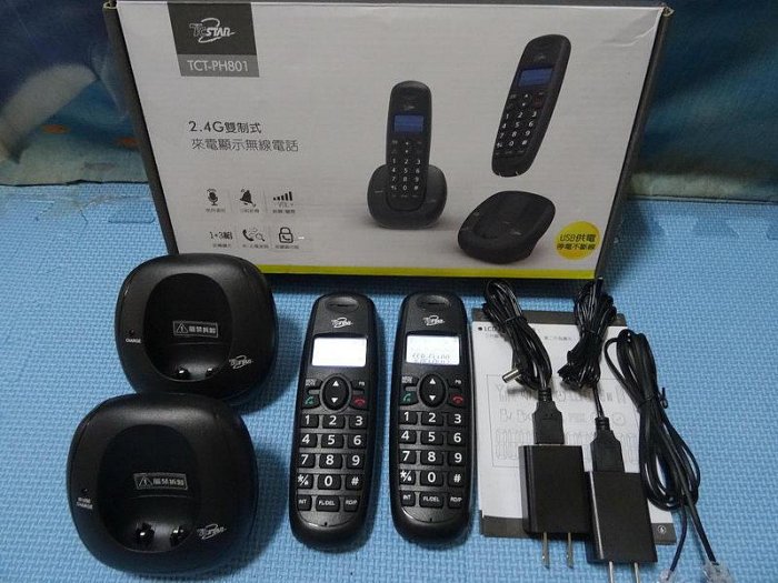 優寶購物《ubao.Tw》特貨品商城,黑貓宅配,取貨付款,功能正常 TCSTAR PH801BK 雙機 子母機~來電顯示~數位無線電話~原廠盒裝 | Yahoo拍賣