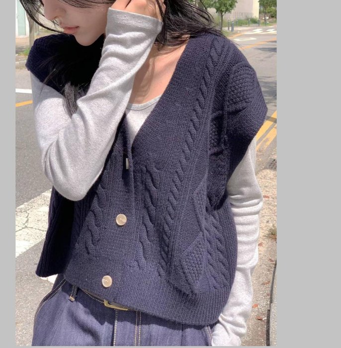 優寶購物《ubao.Tw》特貨品商城,黑貓宅配,取貨付款,Forever Kids 【11/25-28特價599】正韓 好搭落肩菱格編織V領針織背心【A622369】韓國代購 | Yahoo拍賣