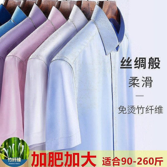 優寶購物《ubao.Tw》特貨品商城,黑貓宅配,取貨付款,夏季短袖襯衫大尺碼男士彈力竹纖維加肥加大商務正裝免燙抗皺襯衫 大尺碼冰絲男襯衫 | Yahoo拍賣