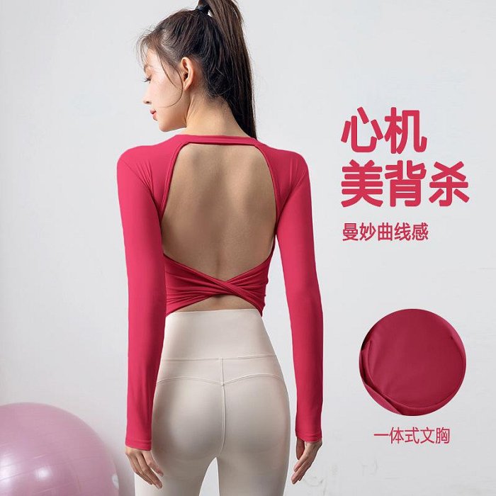 優寶購物《ubao.Tw》特貨品商城,黑貓宅配,取貨付款,大露背長袖瑜伽服上衣女性感美背運動上衣秋冬帶胸墊長袖健身服 | Yahoo拍賣