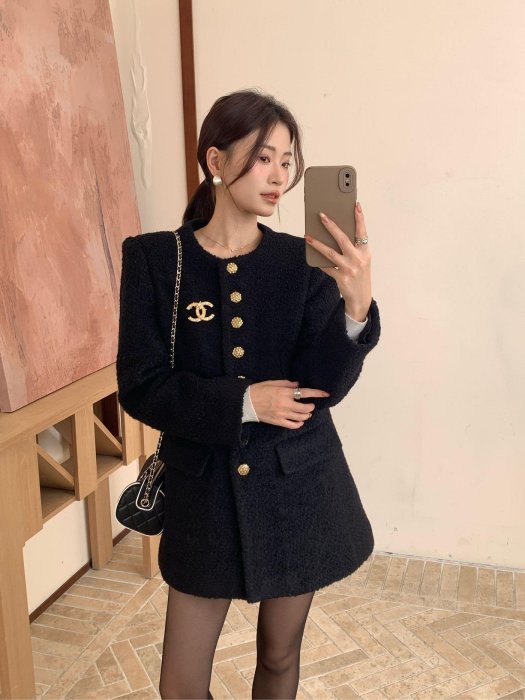 優寶購物《ubao.Tw》特貨品商城,黑貓宅配,取貨付款,高級感冬季外套 25新款 雙C水鑽胸針裝飾夾棉外套大衣 復古單排扣設計 是人生大衣沒錯了 採用羊卷毛面料 表面帶有顆粒肌理感 很高級 內里夾棉設計 保暖效果 | Yahoo拍賣