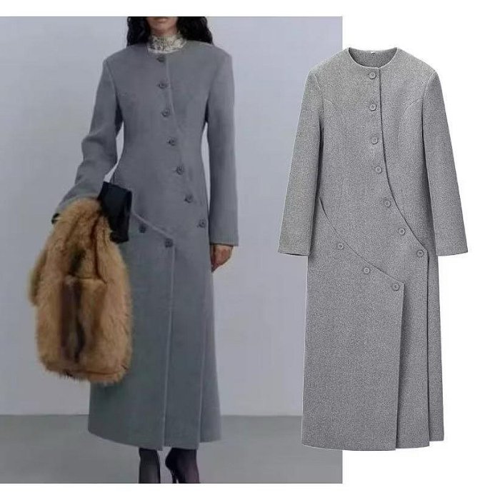 優寶購物《ubao.Tw》特貨品商城,黑貓宅配,取貨付款,外套//歐美時尚冬季新款法式設計感不規則多扣開叉長毛呢外套 | Yahoo拍賣