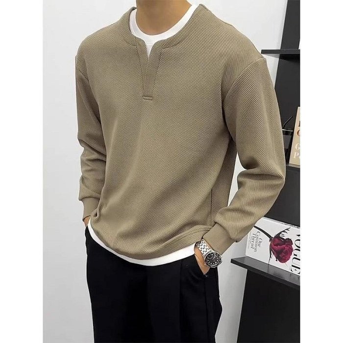 優寶購物《ubao.Tw》特貨品商城,黑貓宅配,取貨付款,斜纹设计感拼接假两件V领卫衣男士秋冬季轻熟风高感打底衫上衣 | Yahoo拍賣