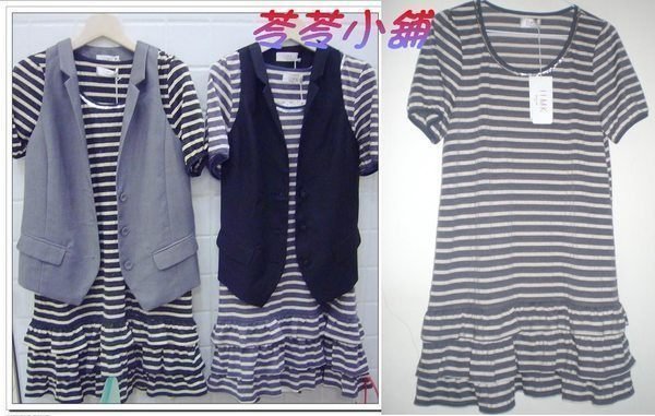 優寶購物《ubao.Tw》特貨品商城,黑貓宅配,取貨付款,苓苓小舖╭☆日系【iimk】專櫃~休閒風 條紋蛋糕裙設計一件式洋裝-F-灰藍條系(原$1790)╭☆特價** | Yahoo拍賣