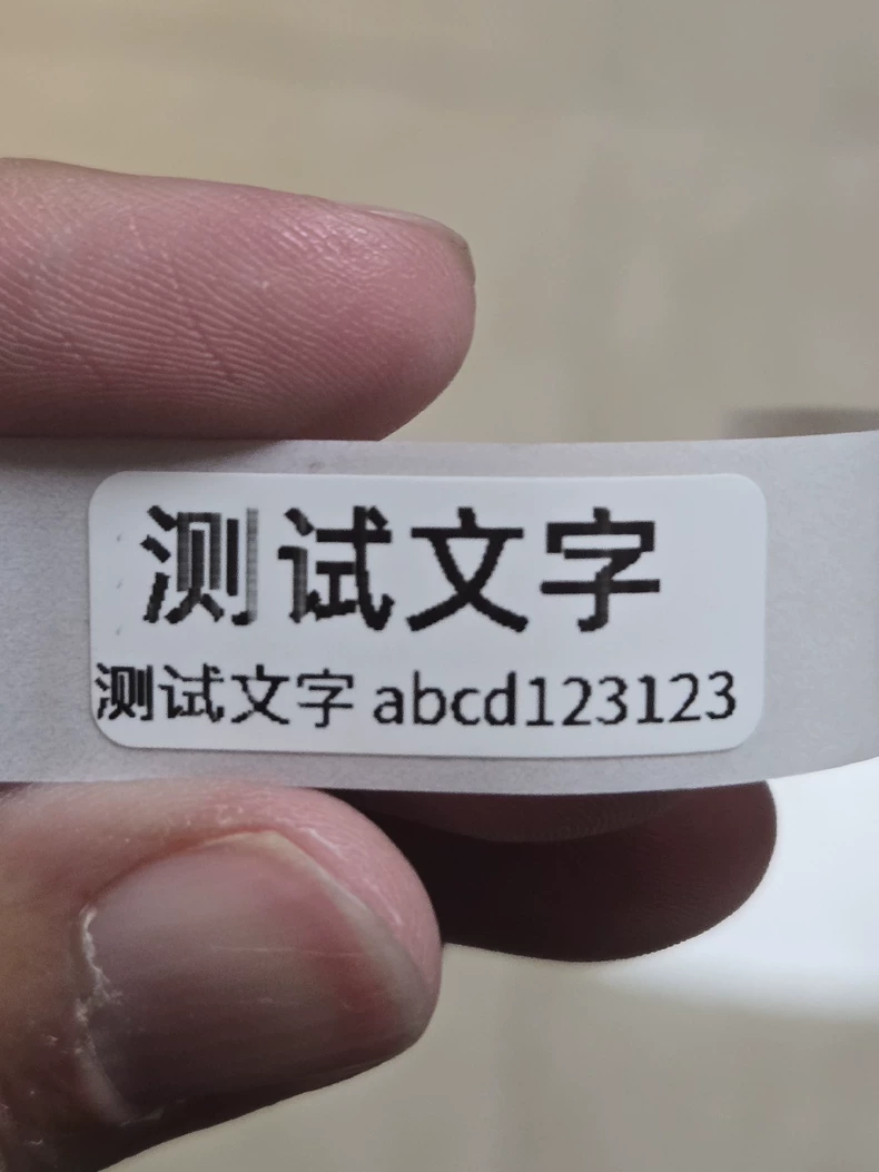 昨天收拾家里翻出一个标签打印机,试了一下还能用,但是不知道是打印头受潮了还是什么的,感觉打出来有裂纹,而且文字暗淡。后来冲了一会儿电,又拿酒精擦了一下打印头就好些了,但我不觉得它完全好了,可能快没电的时候,或者用过一段时间之后,估计还是会有,我放一张打出来的图在最后供参考。