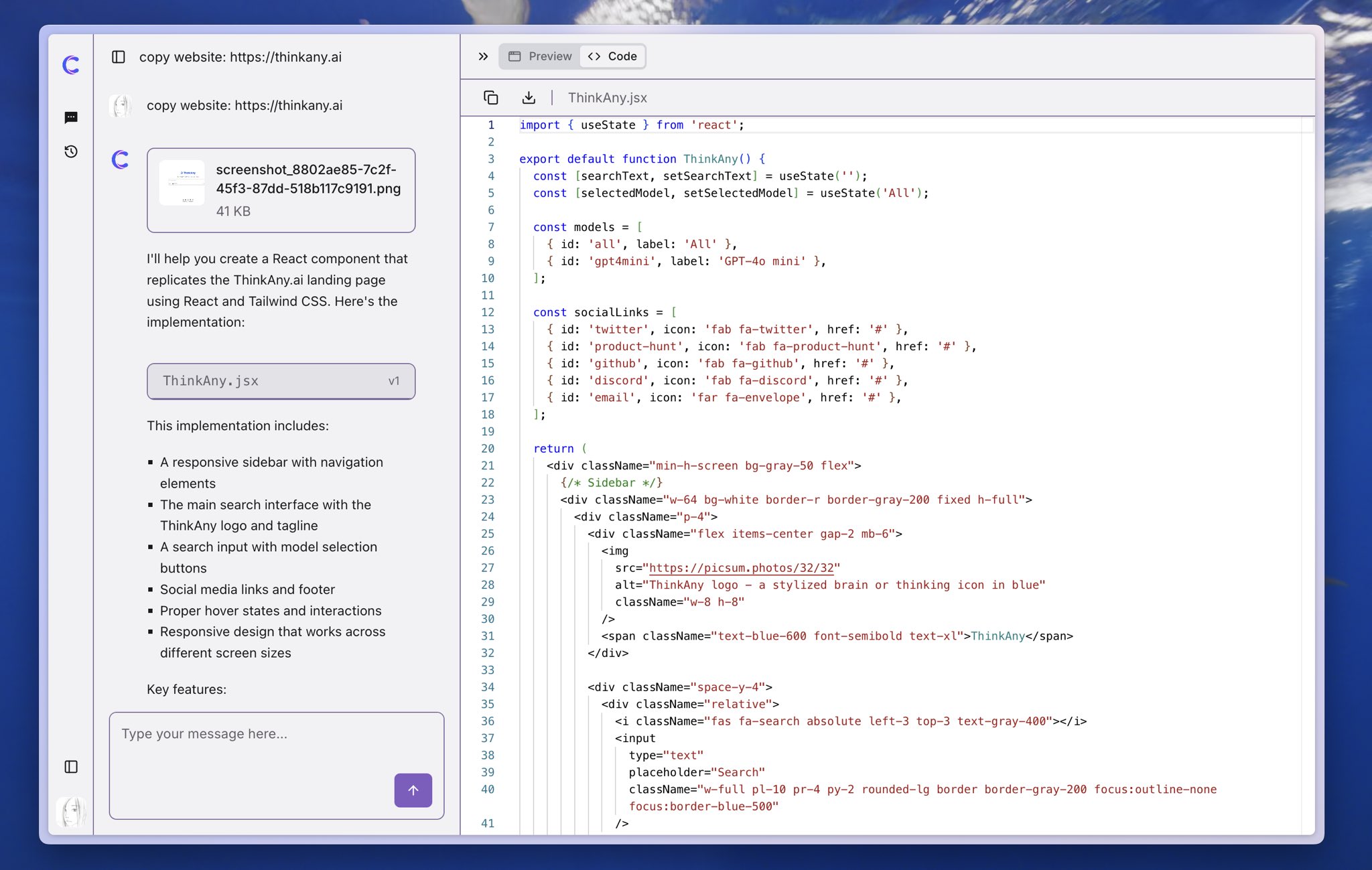 跟 bolt / v0 等产品的主要区别是,CopyWeb 目前专注于做 UI 组件的设计与复刻,在复刻精准度和样式方面有更好的效果。可以理解为是一个垂直领域的 AI Coding Agent 。
