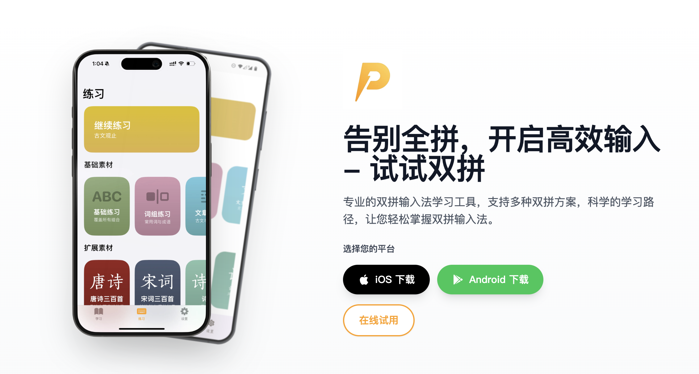 3 年前做了一个 iOS 平台的双拼练习 App 并在 V 站首发( https://v2ex.com/t/838953#reply34), 今年抽时间也做了对应的 Android 版, 前段时间刚刚上架了Google Play, 双拼在 V 站也经常被讨论起,想试试双拼输入法的朋友可以下来试试, 送出 20 个兑换码: