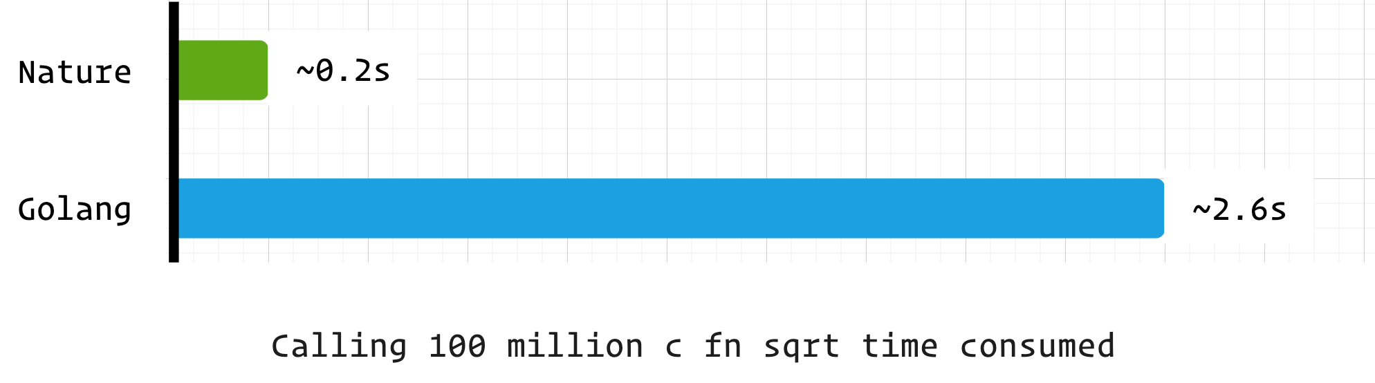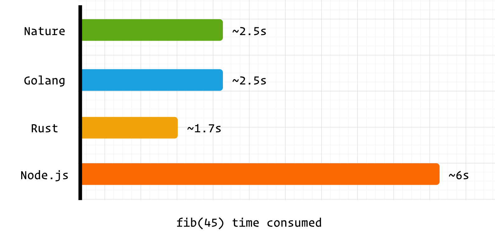 nature 和 golang 均采用自研的编译器后端,性能上也相差无几。而耗时高于 rust 的主要原因之一是两者在函数运行前进行了额外处理。