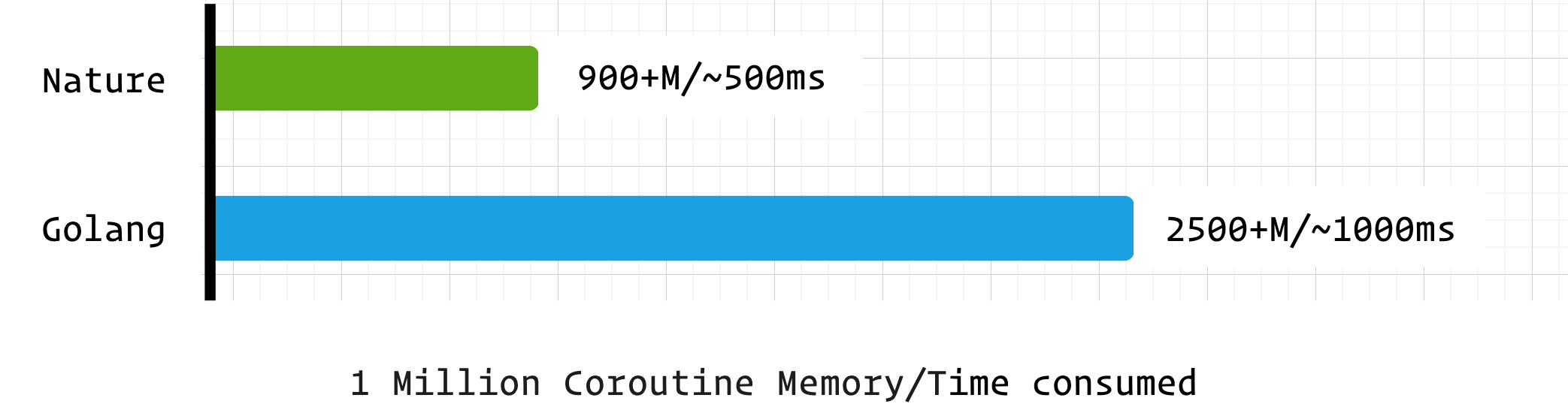协程是现代并发编程的核心组件,本测试通过 “百万协程创建 + 切换 + 简单计算” 场景,评估 Nature 与 Golang 的协程调度效率、内存占用与响应速度。