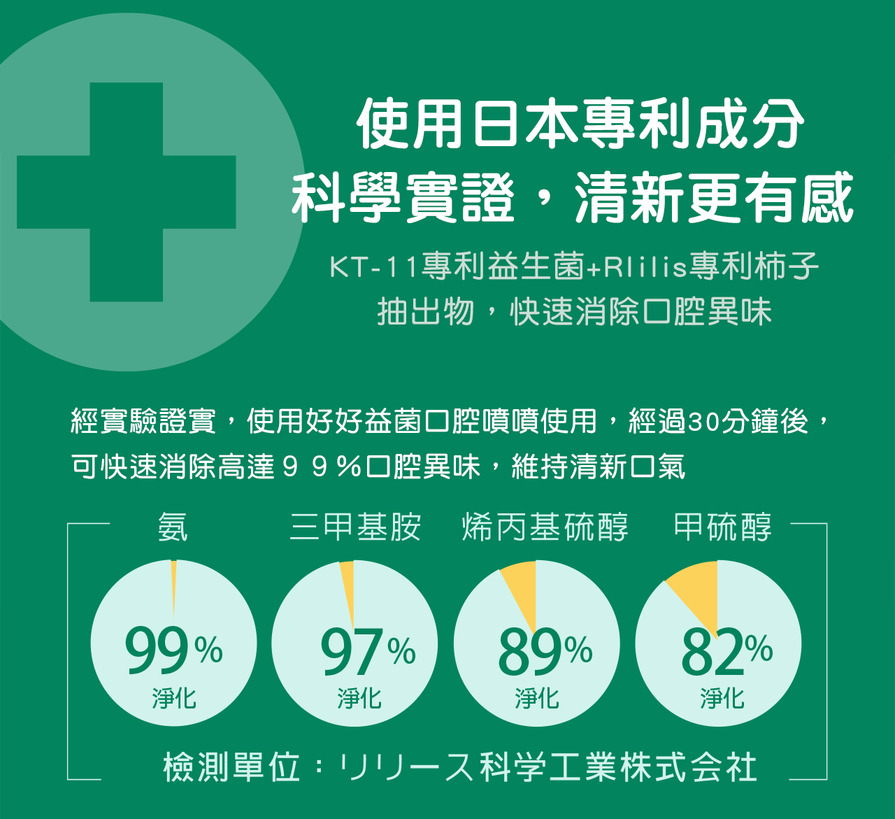 ◆ 好口氣:Rilis日本專利柿子萃取物,有效分解異味分子,常保口氣清新