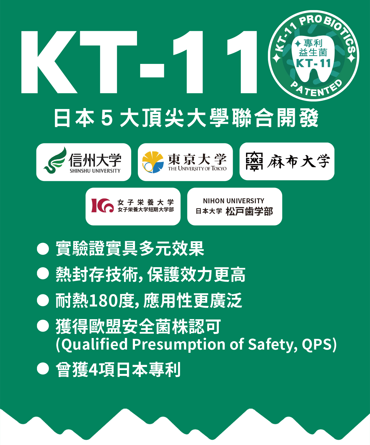 ◆ 日本KT-11 專利口腔益生菌:臨床證實有效維護口腔牙齦健康