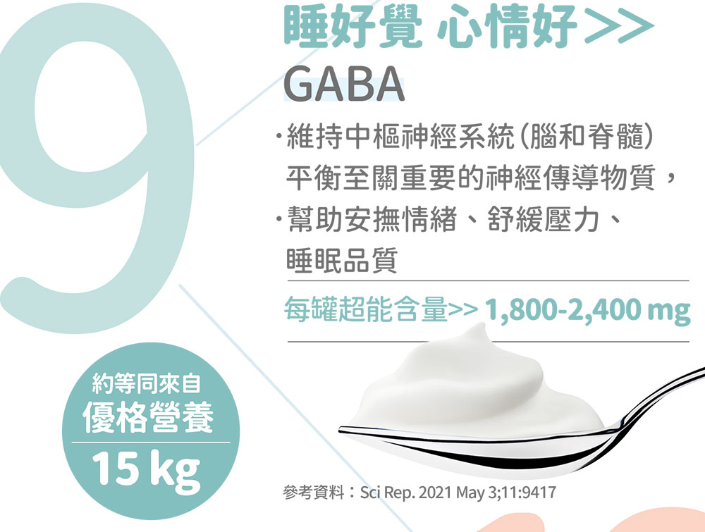 功效成分(每克):羊奶粉:400mg、專利GABAbiotics:20mg