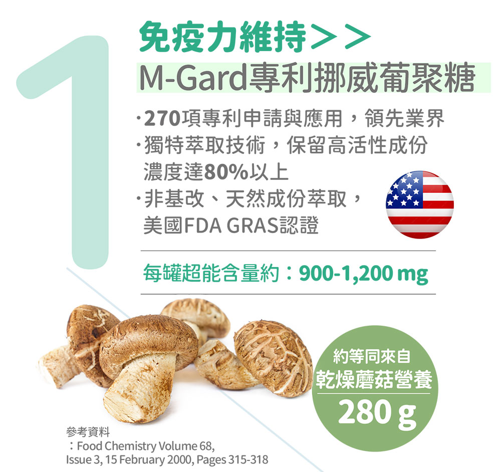 ★ 利用獨特熱封及濃縮技術,將比菲德氏龍根菌表面的免疫調節因子固化並濃縮,保留且強化益菌免疫維持機能。和活菌相比,可耐高溫及酸鹼,單位濃度大幅提升。