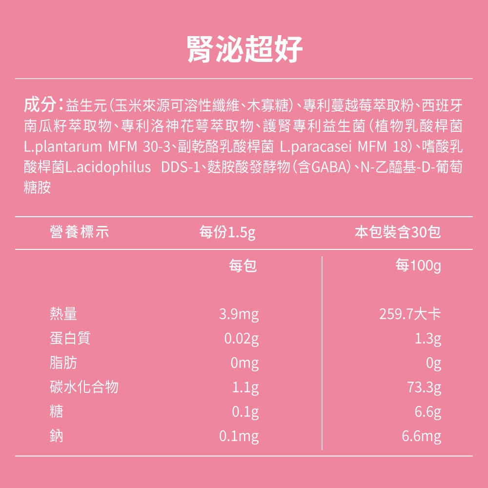 採用腎臟保健TRENAL及DDS-1專利菌,幫助泌尿道健康環境!搭配蔓越莓及洛神花萃取物,維持泌尿道防禦力,全面守護泌尿道及膀胱功能!